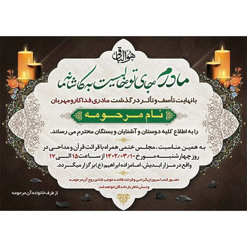 570,000 تومان – 650,000 تومانمحدوده قیمت: 570,000 تومان تا 650,000 توماناعلامیه ترحیم 3