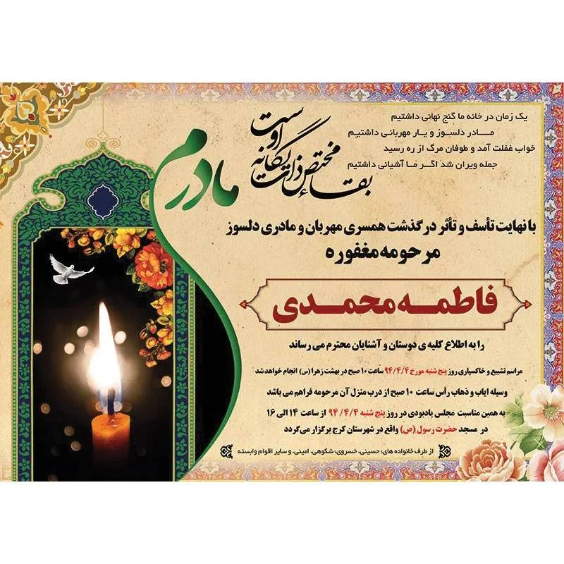 570,000 تومان – 650,000 تومانمحدوده قیمت: 570,000 تومان تا 650,000 توماناعلامیه ترحیم 4